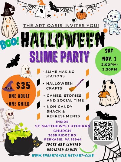 Come and join us for some colorful and (not too) spooky fun at our Halloween Slime Party!