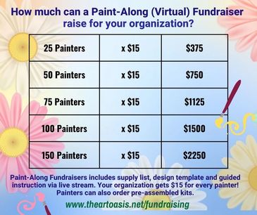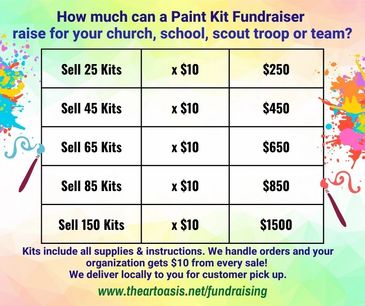 We have special pricing for our "Creative for a Cause" Kit fundraisers. For more detailed information and to discuss your fundraising project, contact Barbara directly: create@theartoasis.net